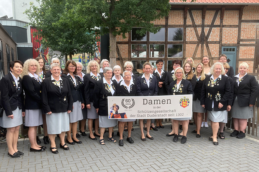 Seit genau 60 Jahren sind die Damen in der Schützengesellschaft vertreten. Als eine der ersten Gesellschaften öffnete sich die Duderstädter Schützengesellschaft 1962 und ermöglichte den Damen, sowohl am Sport- als auch am Traditions-Schießen teilzunehmen.