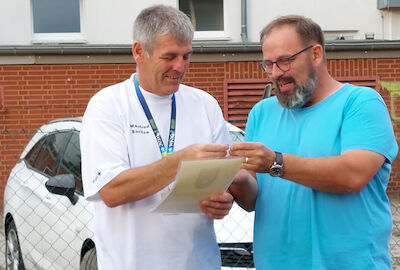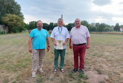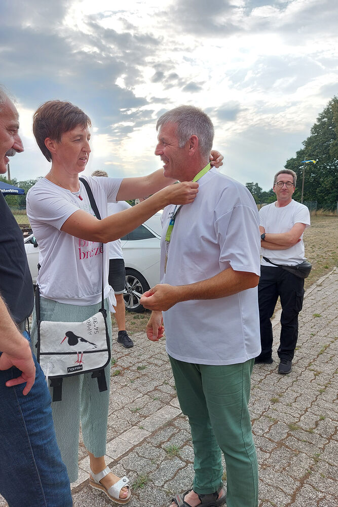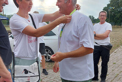 Am Montagabend würdigten die Duderstädter Schützen ihren ersten Weltmeister in einer kleinen Feierstunde auf dem Bogenplatz. Schützenhauptmann Hans-Georg Kracht überreichte einen Blumenstrauß, den Manfred gleich an seine Frau weiterreichte, die Leiterin der Bogengruppe Elisabeth Genz überreichte eine gestaltete Bogenauflage mit den Namen aller anwesenden Gratulanten. Mario Schröter vom Schützenverband Eichfeld zeichnete Manfred Sachse mit der bronzenen Ehrennadel aus.