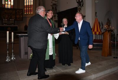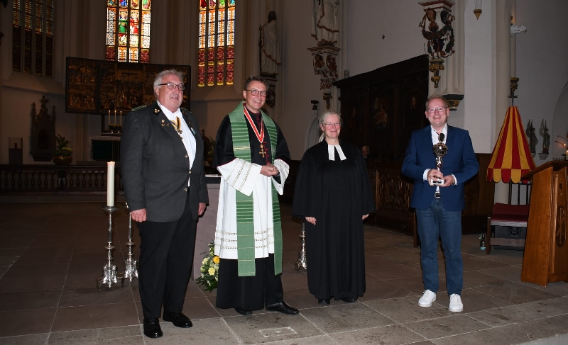 Die Proklamation nahmen Pastorin Christina Abel und Propst Thomas Berkefeld gemeinsam mit Schützenhauptmann Hans-Georg Kracht während des Schützengottesdienstes in der Basilika St. Cyriakus vor.