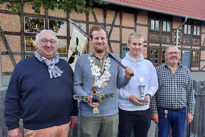 In der fünften Schießrunde gelang es Jonas Huch mit seinem Treffer, alle verbliebenen Teile zu Boden zu bringen. Der neue Vogelkönig stand fest.