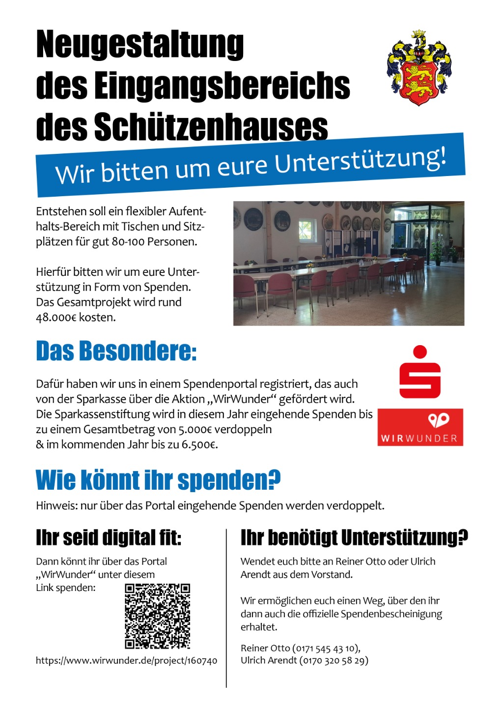 Neue Verdopplungsrunde bei der Spendenaktion "Neue Möblierung für das Schützenhaus"